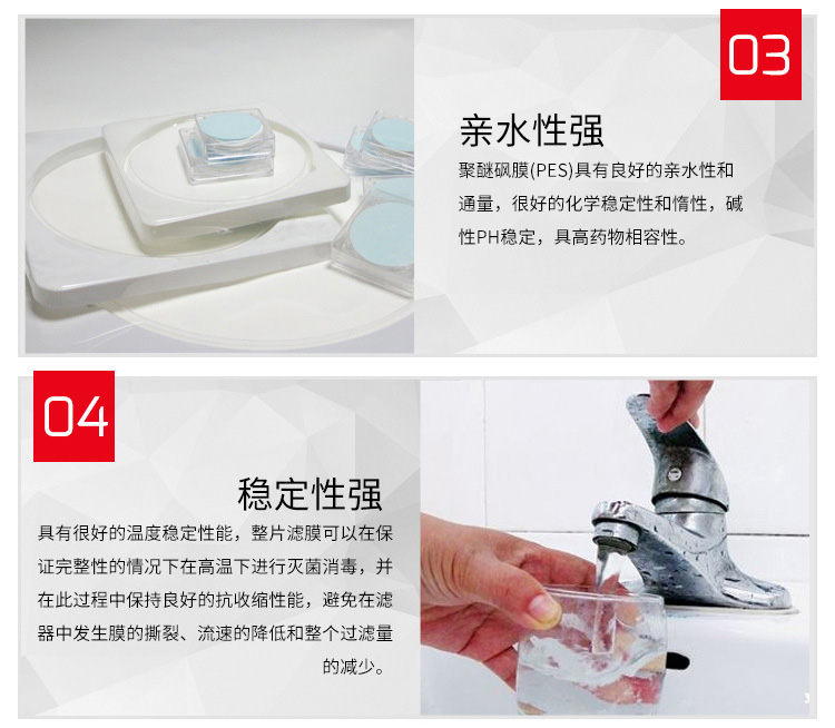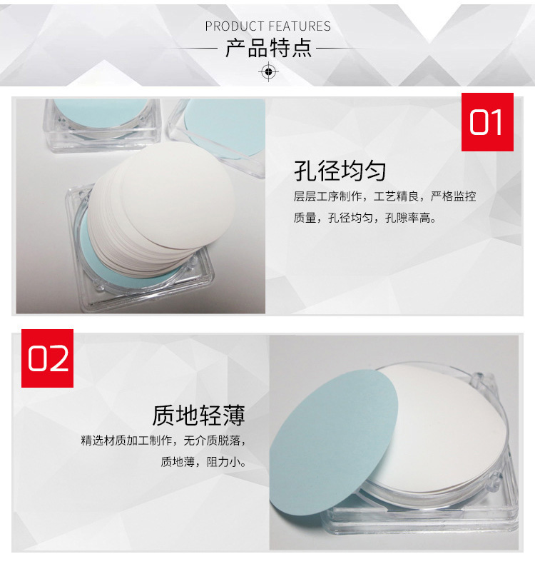 使用要求較高的場合,例色譜樣品或試劑的過濾,若是水系的,蒸餾水洗凈后,再蒸餾水預過濾,若有機系過濾,最好先將本品在純甲苯和95%以上的乙醇中分別浸泡過夜,再純甲苯和純乙醇預過濾,徹底洗凈膜后使用。