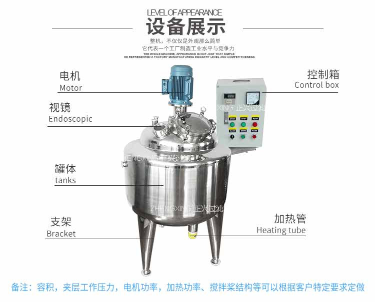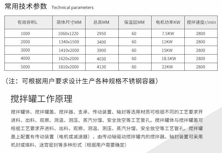 1、容積:50L、100L、200L、300L、500L、600L、1000L~5000L(可根據(jù)客戶需要按需定制,各種非標(biāo)設(shè)計(jì))。