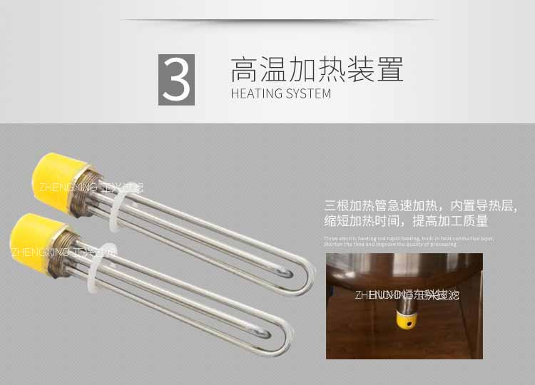 第一種:采用電熱管插入夾套內(nèi),夾套內(nèi)以導(dǎo)熱油或水為加熱介質(zhì),加熱均勻,外面設(shè)置保溫層,熱損失小。