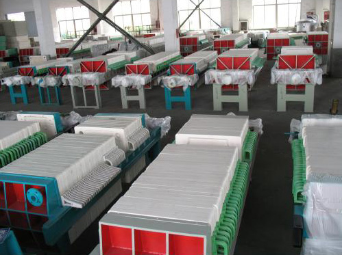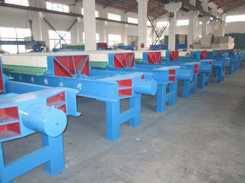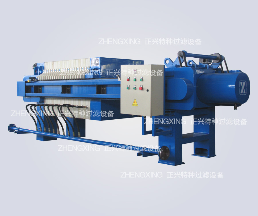 壓濾機是利用濾布兩邊的壓力差,迫使物料中的絕大部分水份透過濾布,流出機體外,而物料被阻隔在濾室內形成濾餅,以達到過濾的目的。由于在過濾過程中濾布兩邊存在著較大的壓力差,提高了過濾速度降低了濾餅的含水,且采用特制濾布,使得濾液純清,過濾效果比真空過濾機要好得多。