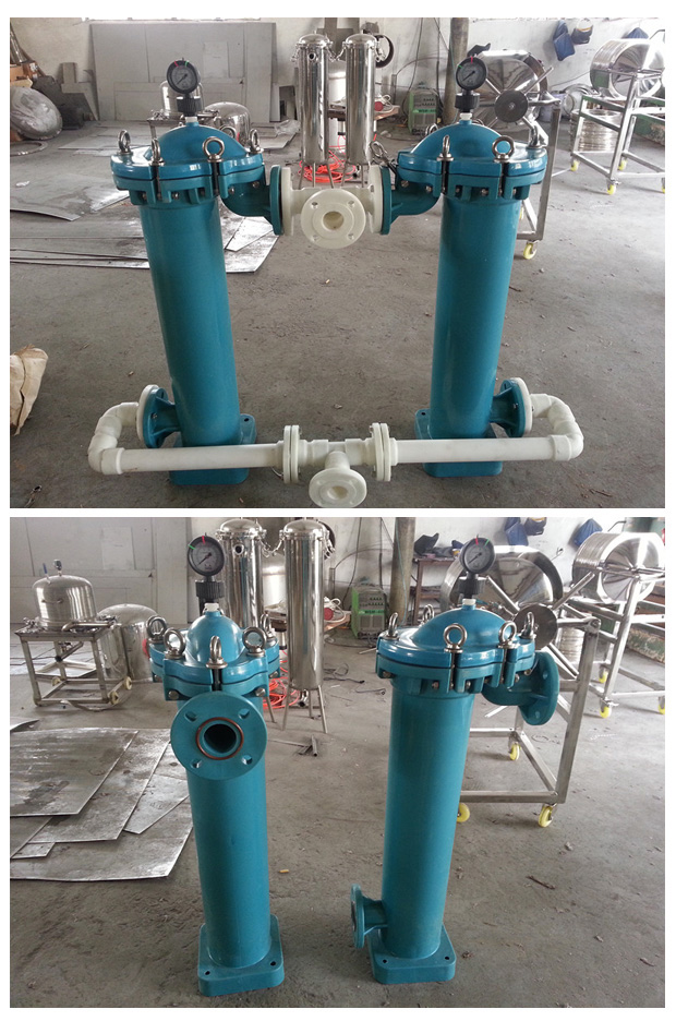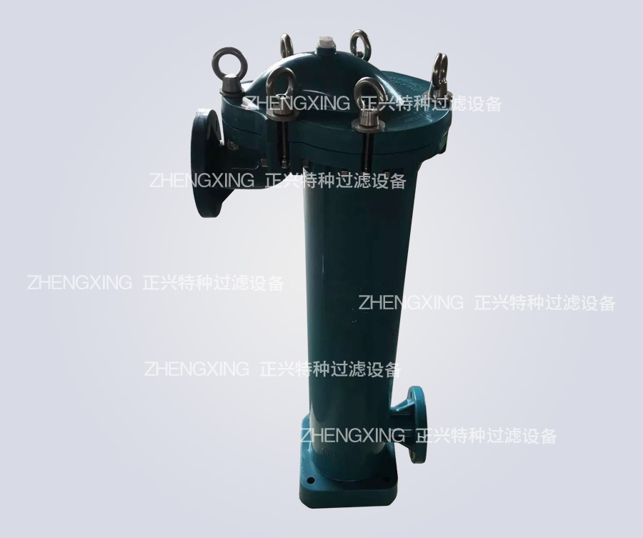 袋式過濾機是一種壓力式過濾裝置,主要有過濾筒體、過濾筒蓋和快開機構、PVC/PP濾袋加強網等主要部件組成,濾液由過濾機外殼的旁側入口管流入濾袋,濾袋本身是裝置在加強網籃內,液體滲透過所需要細度等級的濾袋即能獲得合格的濾液,雜質顆粒被濾袋攔截。該機更換濾袋十分方便,過濾基本無物料消耗。