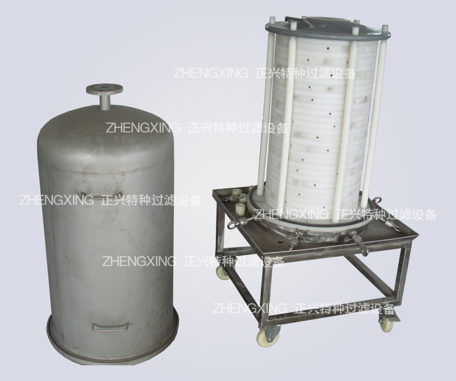 襯PE或襯PTFE耐強酸堿過濾器是新研發的一種新型層疊式液體過濾器,經我廠多年來生產過濾器的實踐經驗制造而成的,本機廣泛運用于化工、醫藥、石油環保等行業,對各類液體中微小雜質進行過濾、澄清,提純處理的新設備。本機采用優質不銹鋼內襯抗腐蝕材料制造,工藝制作精良,性能安全穩定,抗腐蝕,經久耐用,結構新穎,操作簡便,靈活節能,適應性強的多用途過濾設備。(本機可以初濾,半精濾,精濾) 本機過濾裝置是由多層重疊過濾網板和法蘭圈組成,網板孔由電腦打孔,孔密小均勻,這可保證每層過濾網板上的濾材壓力均勻,使過濾精度優,本機腔內殼體與底盤形成封閉的內腔體,液體經過加壓進桶內藥液外發蘭圈上面多個孔進入內腔體,經過濾材網板,從中間小法蘭多個孔出來,合格液體排出口。