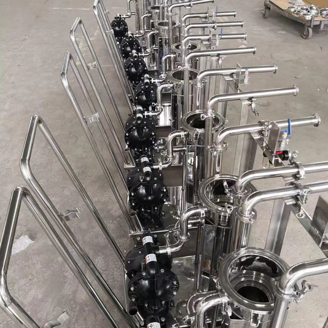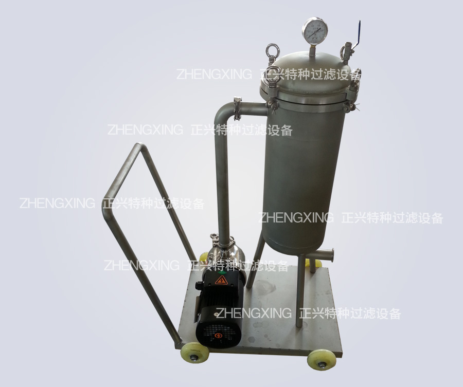 泵啟動(dòng)后,過(guò)濾機(jī)上壓力表微微上升,初始?jí)毫s0.05MPa左右,隨著使用時(shí)間的延長(zhǎng),缸內(nèi)濾渣逐漸增多,當(dāng)壓力達(dá)到0.4MPa時(shí),應(yīng)停機(jī)打開筒蓋,檢查濾機(jī)袋留渣情況,可更換濾袋繼續(xù)使用(濾袋通過(guò)清洗一般可重復(fù)使用)。
