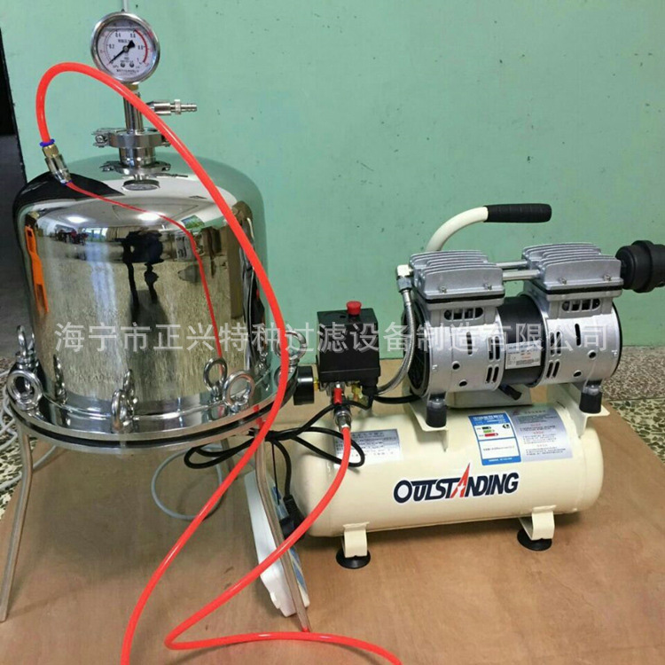 可用真空泵抽濾或空氣壓縮機過濾,還可作板框多層過濾器和封閉式液體配置循環組和剩液過濾,節約原材料的應用,又可和一般加壓泵配套使用,能達到一機多用的優點。