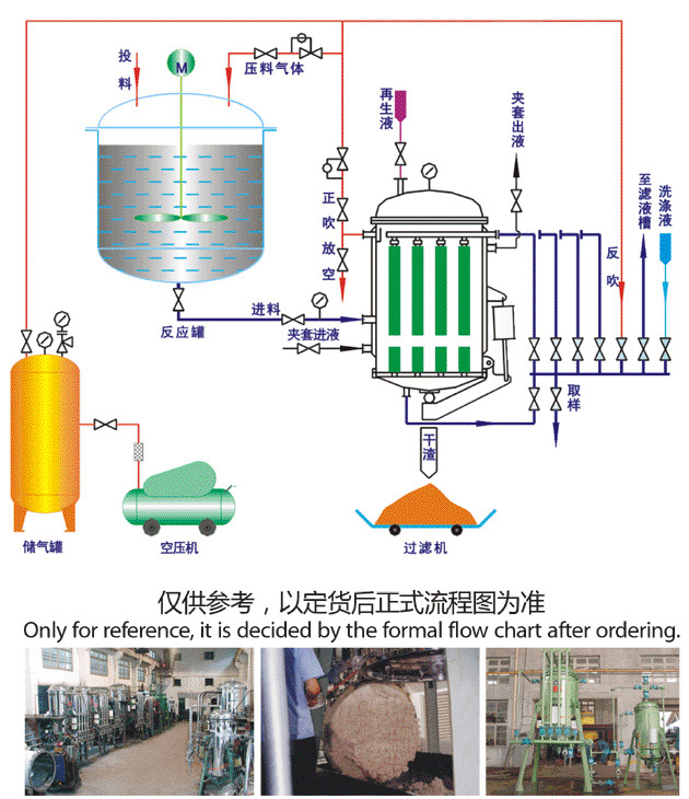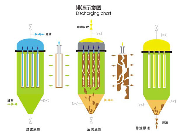 2、微孔過濾器密閉過濾,清潔化生產;操作簡便,氣動排渣口的啟閉只要幾個閥門的操作就行;過濾管再生方便,對過濾管的反吹再生非常簡便,只要開啟反吹閥門即可完成。