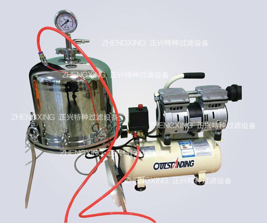 可用真空泵抽濾或空氣壓縮機過濾,還可作板框多層過濾器和封閉式液體配置循環組和剩液過濾,節約原材料的應用,又可和一般加壓泵配套使用,能達到一機多用的優點。